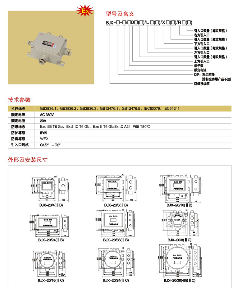 BJX防爆接線箱(IIC) 鋼板箱 非標(biāo)定制