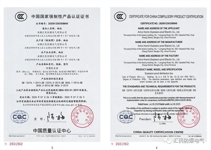 防爆合格證,3C強制產(chǎn)品認證證書,ISO9001質(zhì)量管理體系認證證書。